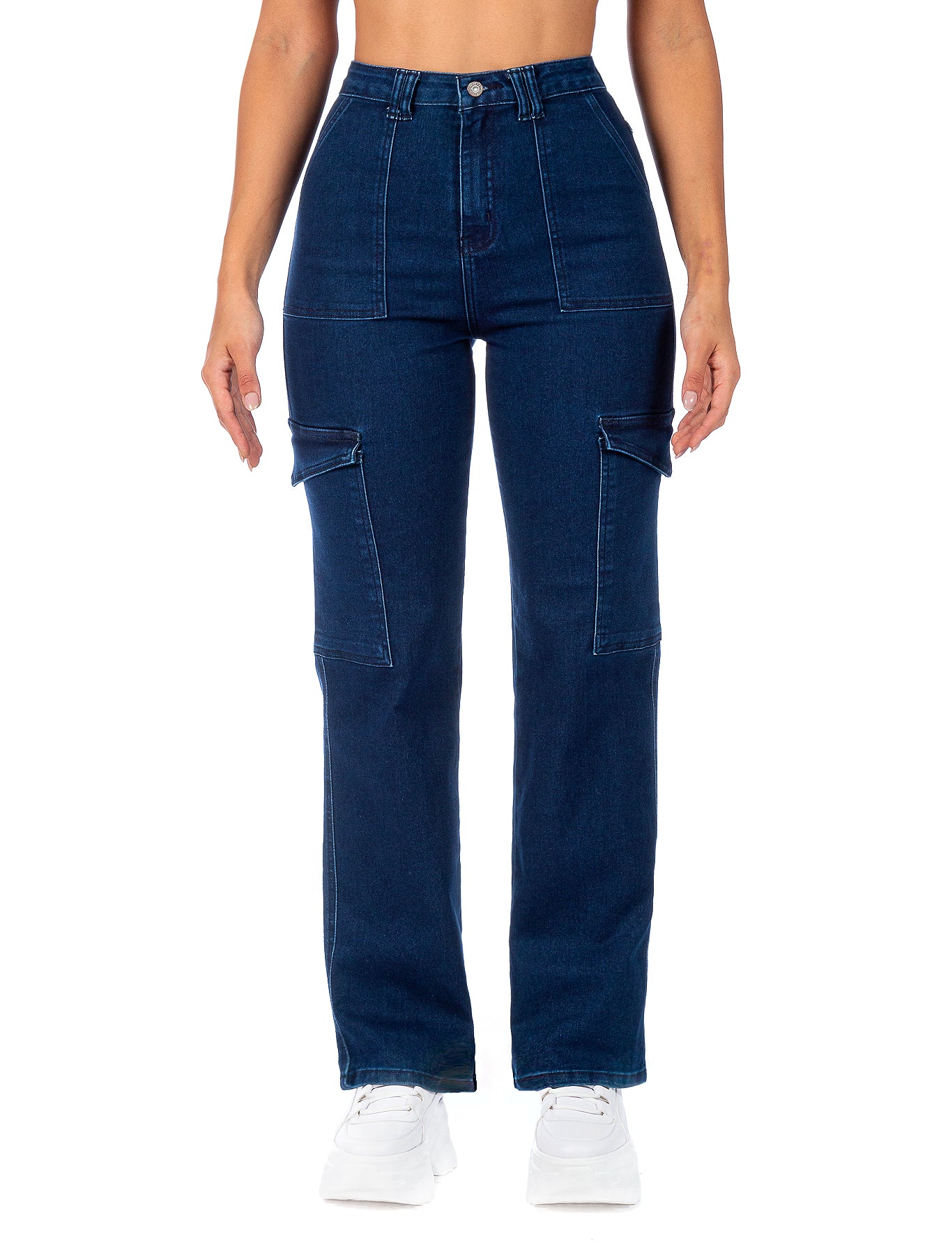 Pantalón Cargo Mezclilla Stretch Mujer Tiro Alto