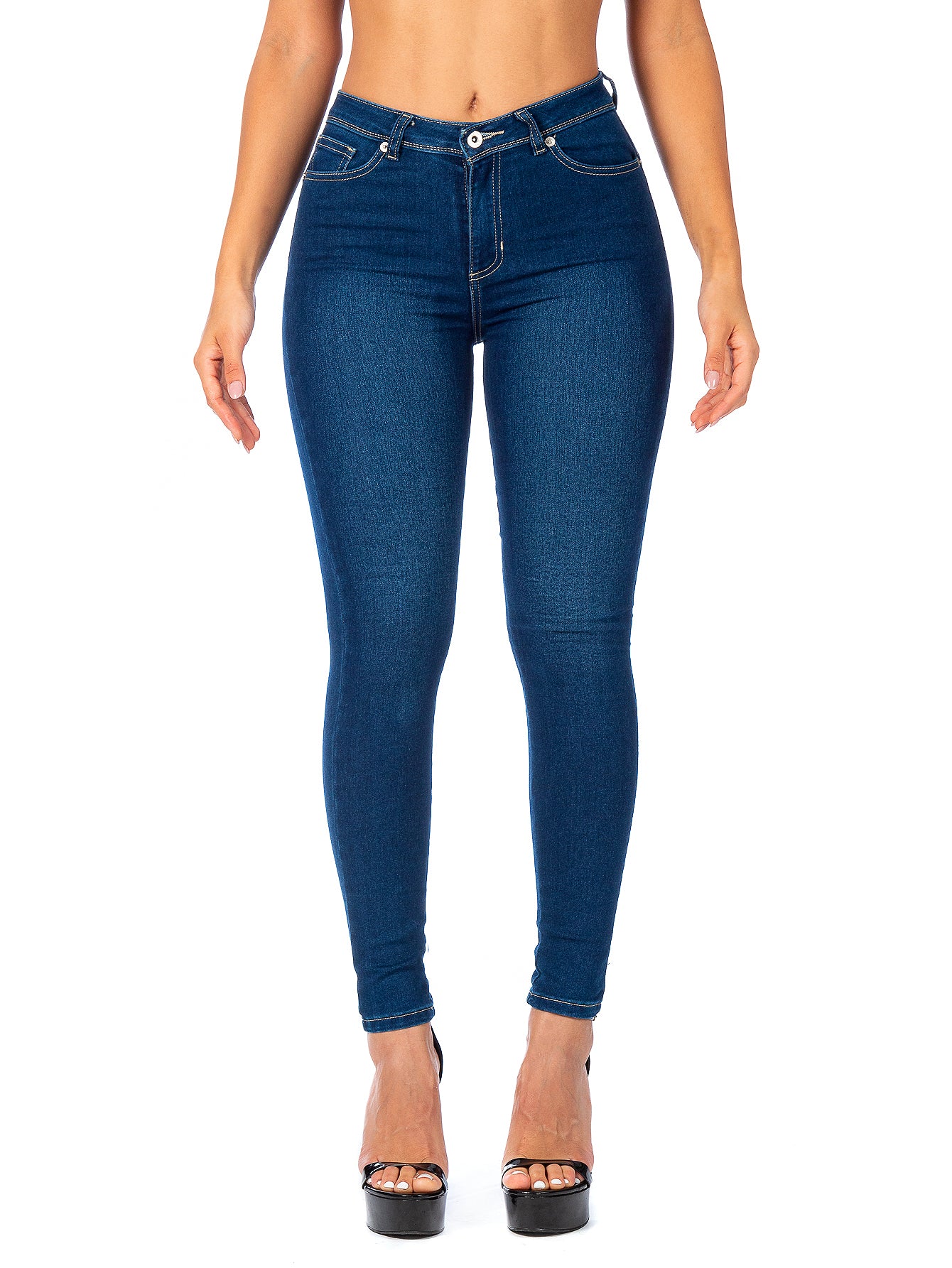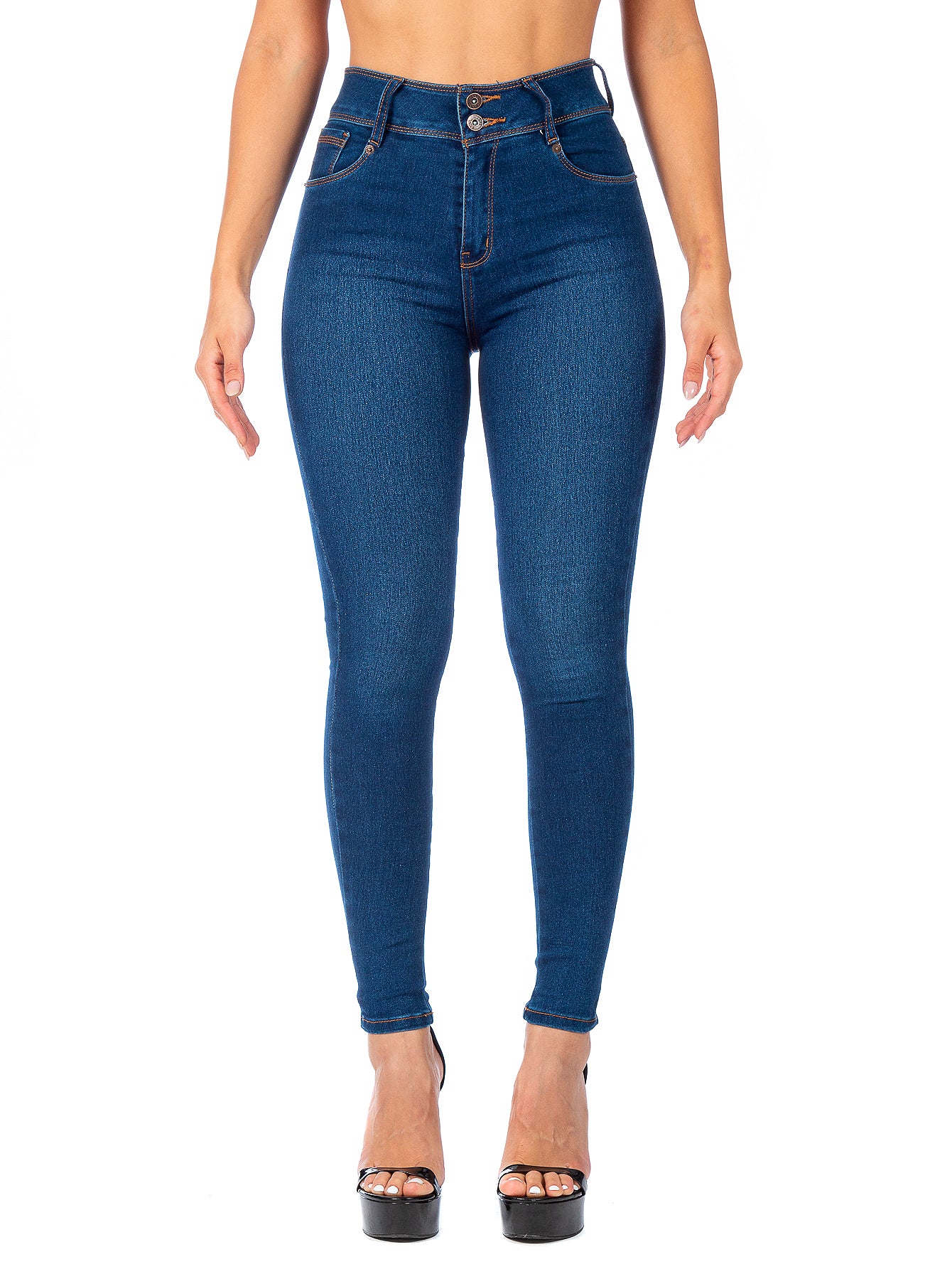 Pantalón Mezclilla Stretch Mujer Pretina Alta Con Bolsillos