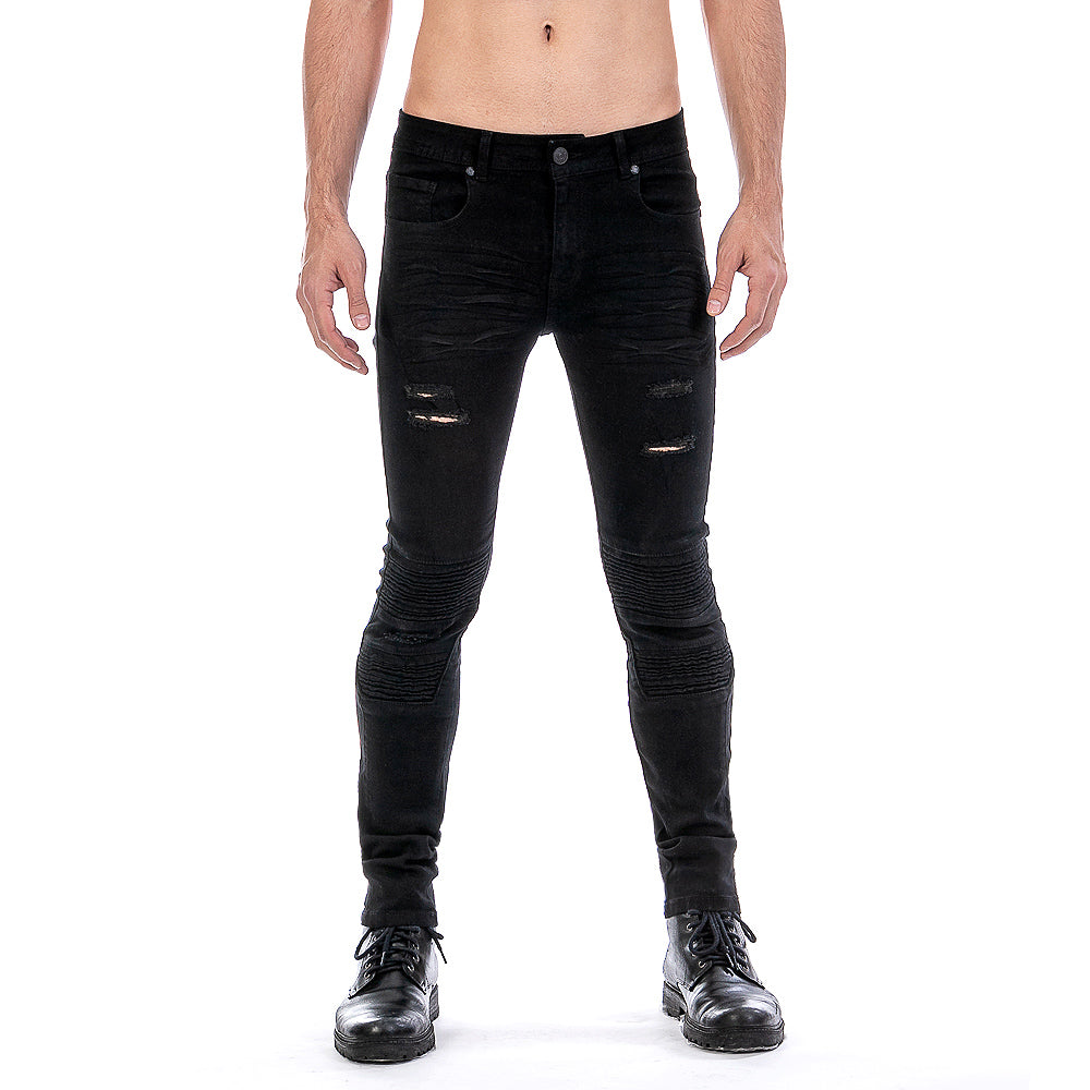 Pantalón Mezclilla Stretch Hombre Biker Negro Demolición